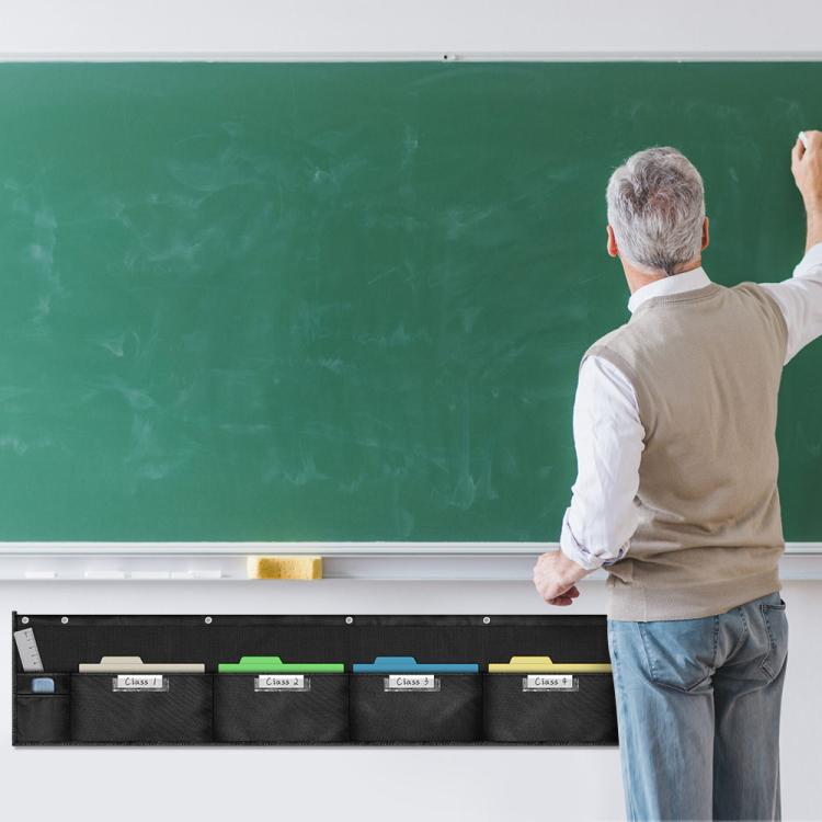 4 Grids File Storage Hanging Bag Horizontal Wall Mount For Under Classroom Whiteboard(Red)