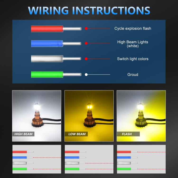 10. Uses multi-color LED chips, allowing switching between different light colors and lighting modes (constant on + strobe), adapting to different weather conditions and greatly improving driving safety.