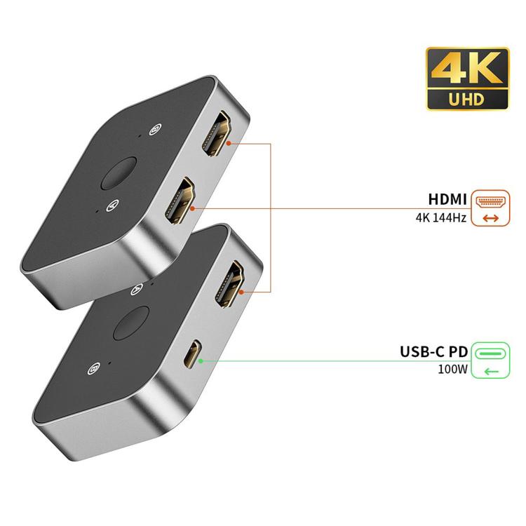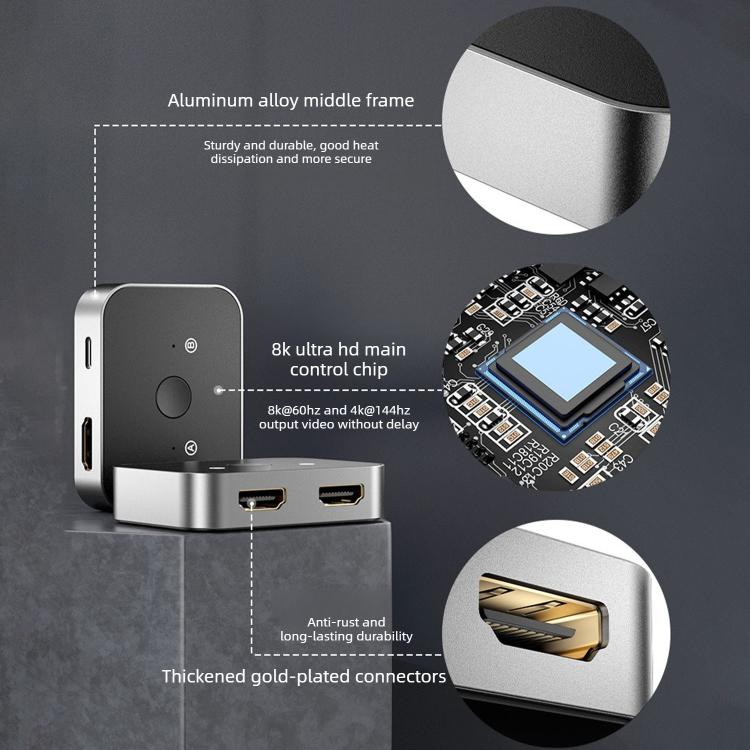 4K 144HZ Bidirectional Switching HDMI HD Video Distribution Switcher(Grey)
