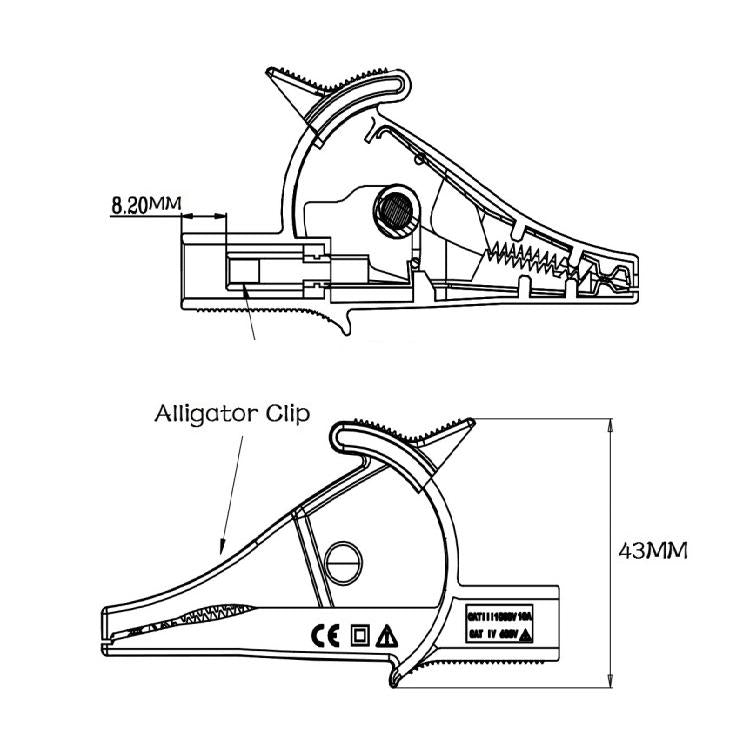 3. The tail of the crocodile clip is a 4MM straight-insert rigid jack.