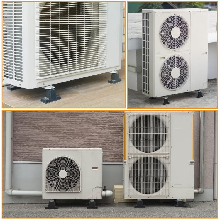 1. Specially designed for A/C outdoor units, this 4-piece TPU-rubber bracket set integrates vibration dampening, noise reduction, and elevation functions. Supports up to 500kg load capacity. Compatible with 1P/1.5P/2P/3P/5P models.