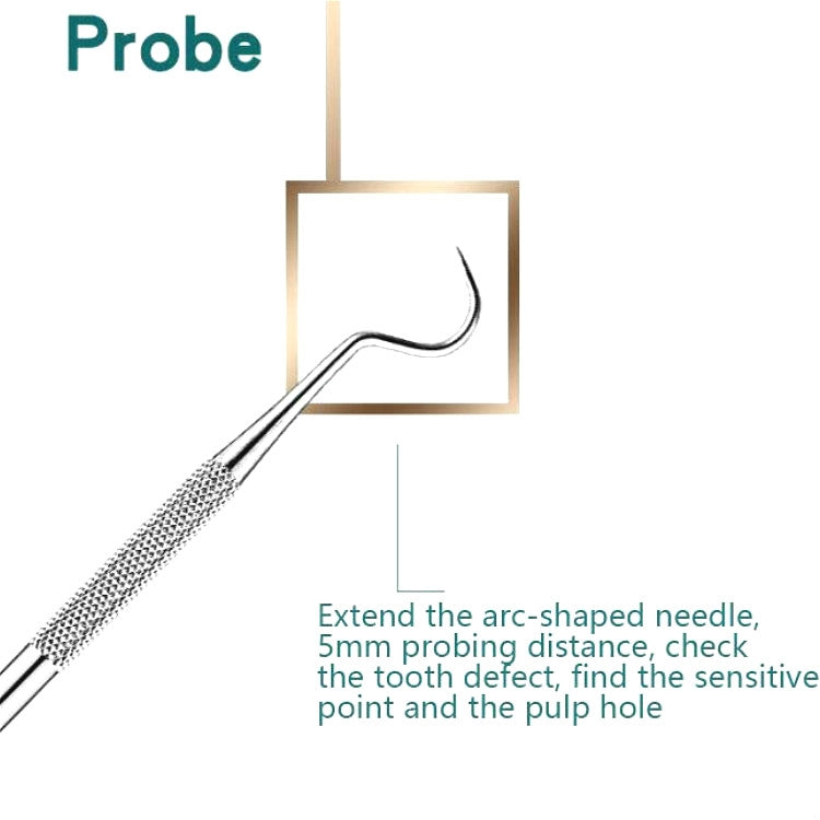 -Probe: extend the curved needle, 5mm probing distance, check the tooth defect, find the sensitive point and the pulp hole