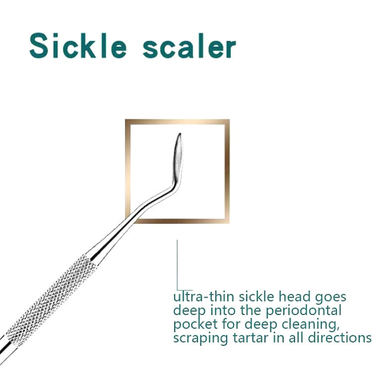 -Sickle-shaped scaler: Ultra-thin sickle head goes deep into the periodontal pocket for deep cleaning, scraping tartar in all directions