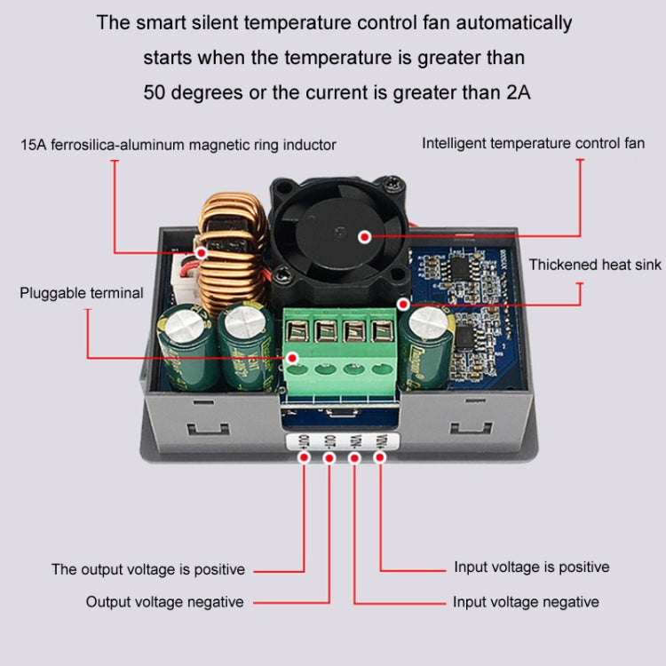 16. Intelligent silent temperature-controlled fan, the fan automatically starts when the temperature is greater than 50 degrees or the current is greater than 2A