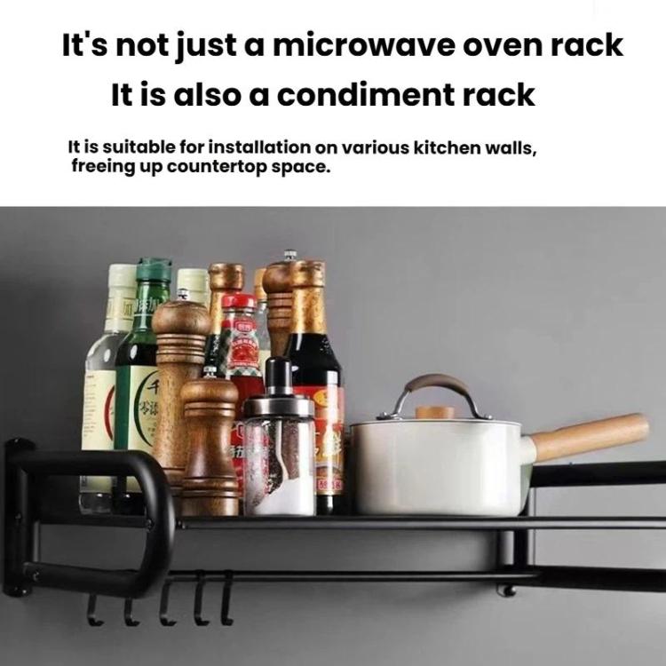 1. This Heavy-Duty Stainless Steel Wall-Mounted Microwave Shelf is a space-saving kitchen organizer designed to securely hold microwaves, ovens, rice cookers, and other appliances (up to 31 kg/68 lbs). With thickened stainless steel construction and anti-tip safeguards, it optimizes vertical storage for both home and commercial kitchens.