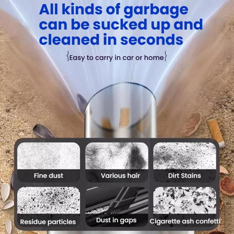 2. Dual-Action Cleaning: Equipped with suction + blower tubes: Front-end suction removes dirt, rear-end airflow blows away hidden dust for 360 degrees coverage. Ideal for tight spaces like car vents and sofa gaps.
