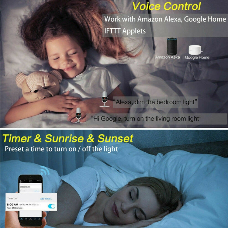 1. WORK WITH ALEXA & GOOGLE ASSISTANT: Use simple conversation starters to turn your lights on and off, make them brighter and swap them to your favorite color, currently compatible with Alexa , Google Assistant.