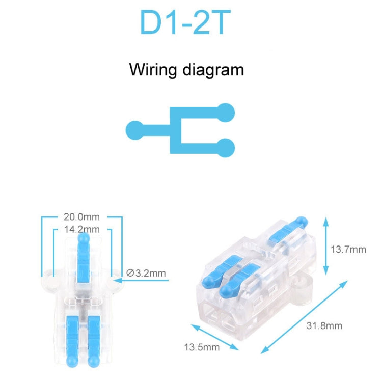 5pcs D1-2T Push Type Mini Wire Connection Splitter Quick Connect Terminal Block(Blue)