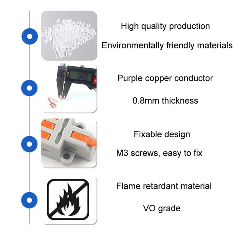 5pcs D1-4 Push Type Mini Wire Connection Splitter Quick Connect Terminal Block(Yellow)
