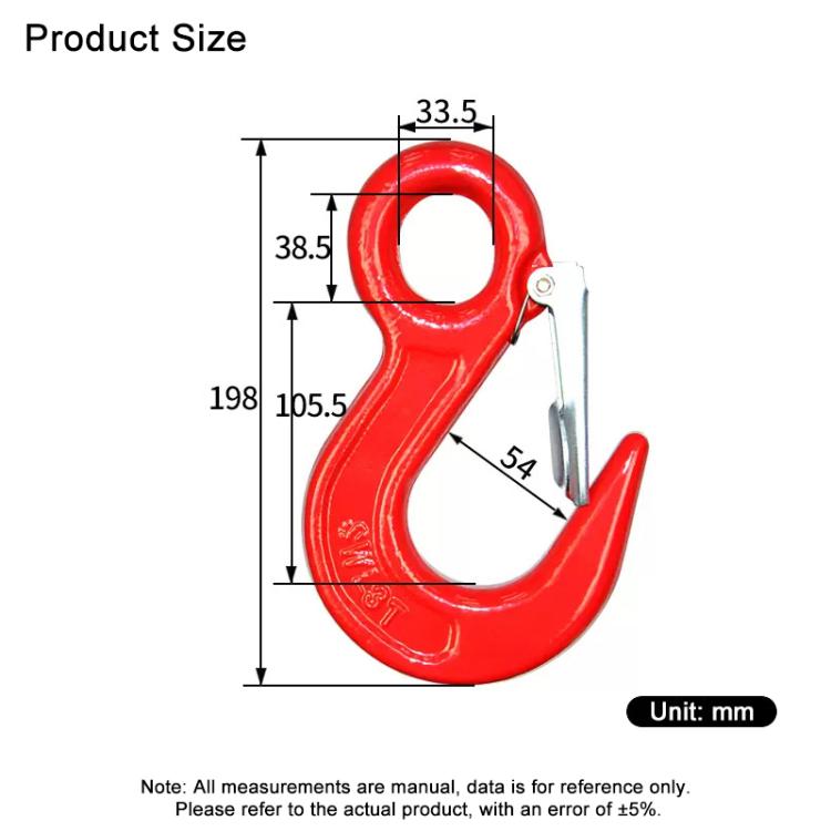 3. Equipped with a spring-loaded safety latch that automatically retracts, effectively preventing accidental detachment of steel cables and chains during lifting operations, enhancing operational safety.