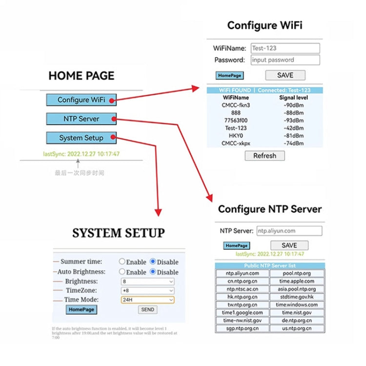 5. WiFi configuration information will be memorized. After configuring WiFi, as long as the WiFi signal is valid, it will automatically connect to WiFi to obtain the network time, keeping the time accurate for a long time.