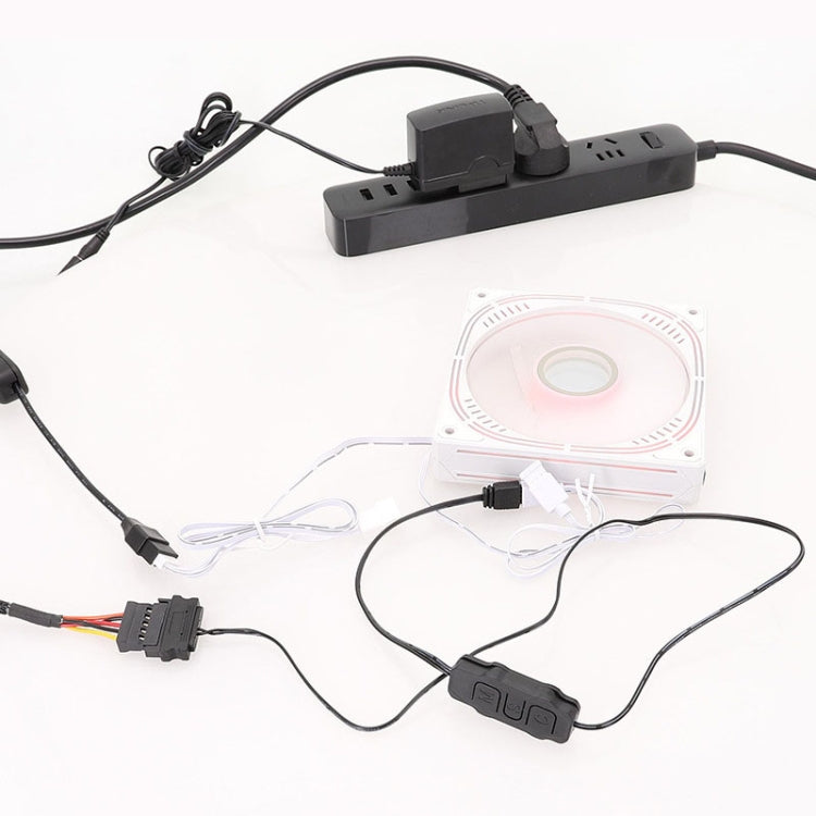 6. Product function: connected to the power supply SATA power supply, and can be controlled through the controller ARGB device light effect, the speed and brightness of the light effect is freely adjustable, does not require the motherboard has an ARGB interface