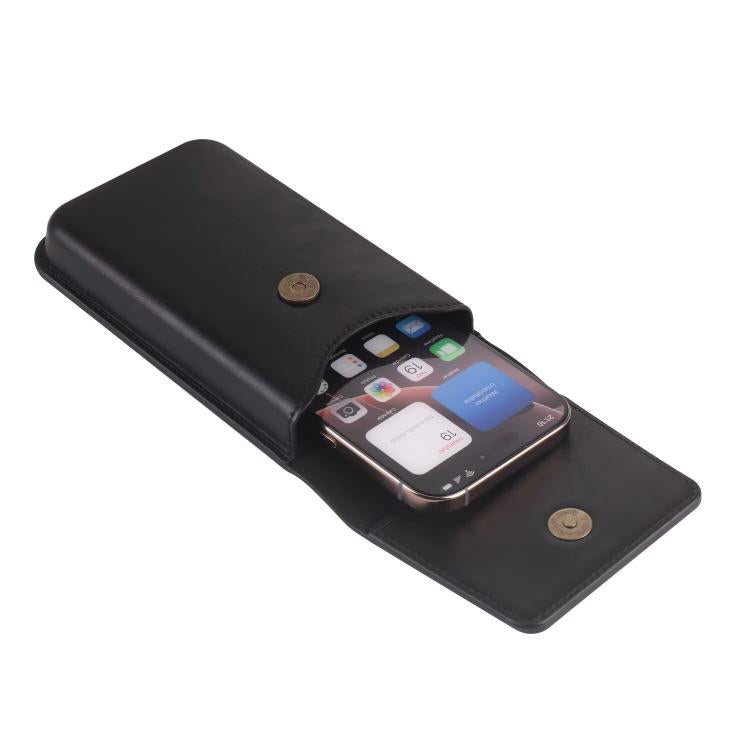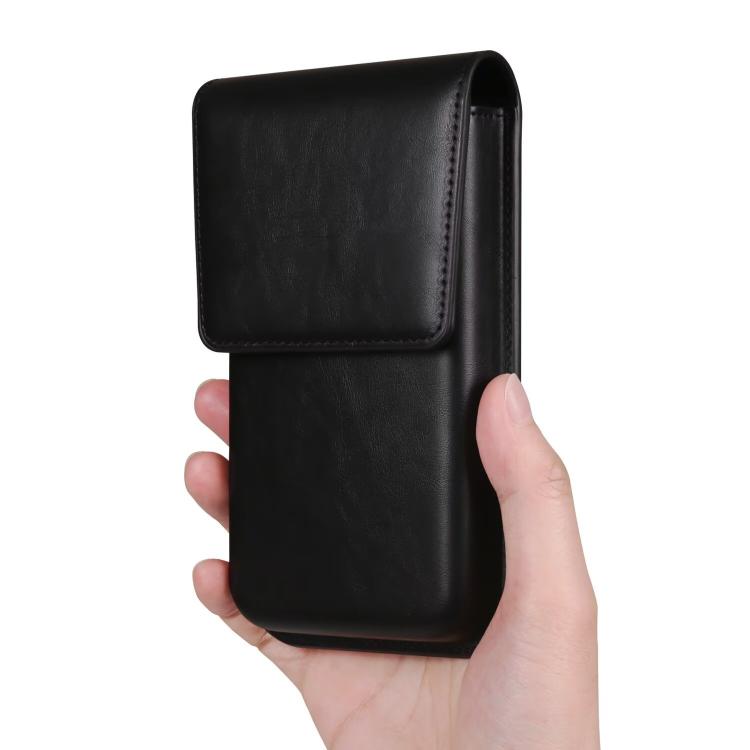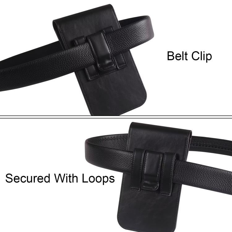 6.7-6.9 Inch Vertical Leather Waist Phone Pouch With Oversized Flap & Belt Loop Design Smartphone Holder(Black)
