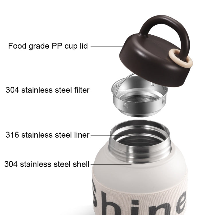600ml 316 Stainless Steel Portable Thermos Coffee Cup with Tea Filter(White)