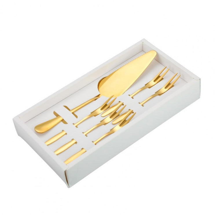 6pcs/set Stainless Steel Cake Knife And Fork Set, Color: Gold With 2-tine Forks