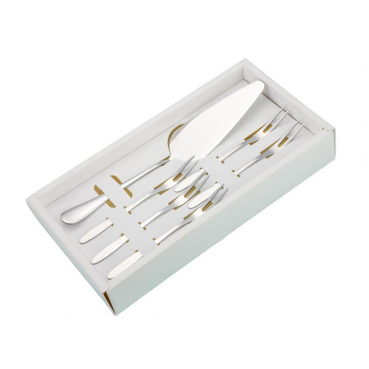 6pcs/set Stainless Steel Cake Knife And Fork Set, Color: Silver With 2-tine Forks