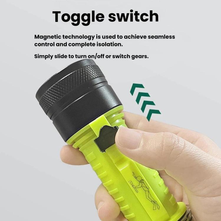 8. Features: Diving flashlight, three modes (high light - low light - strobe), magnetic push-button switch, submersible up to 80 meters, IPX8 waterproof.