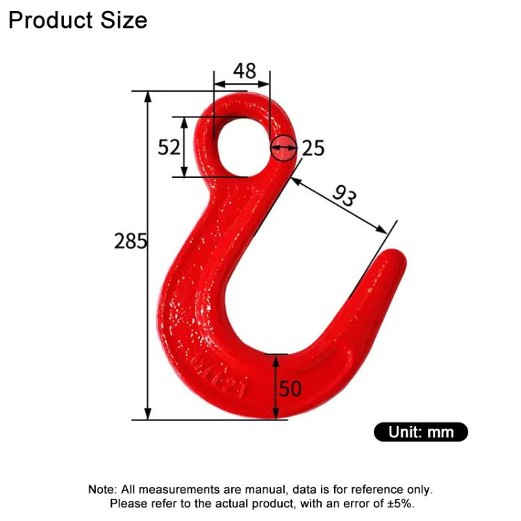 3. Equipped with a spring-loaded safety latch that automatically retracts, effectively preventing accidental detachment of steel cables and chains during lifting operations, enhancing operational safety.