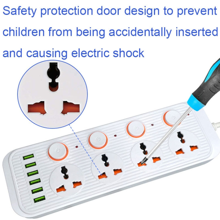 A05 2m 3000W 4 Plugs + 6-USB Ports Multifunctional Flame-Retardant Socket With Switch(US Plug)
