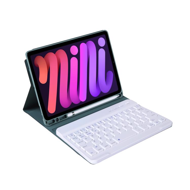 A06B Ultra-thin Detachable Bluetooth Keyboard Leather Case with Pen Slot & Holder for iPad mini 6 / mini 7(Dark Green)