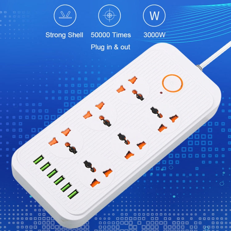 A07 2m 3000W 6 Plugs + 6-USB Ports Multifunctional Flame-retardant Socket with Switch(US Plug)