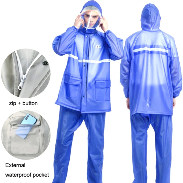 Adult Anti-Riot HD Double Brim Raincoat Rainpants Sets, Size: XXL(Sea Blue)