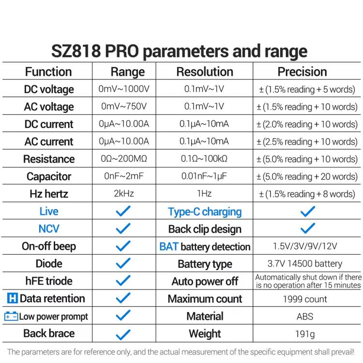 ANENG SZ818 Digital Multimeter with NCV Detection Voltage Tester for AC/DC Current/Voltage, hFE Triode, and Capacitor Test Tool