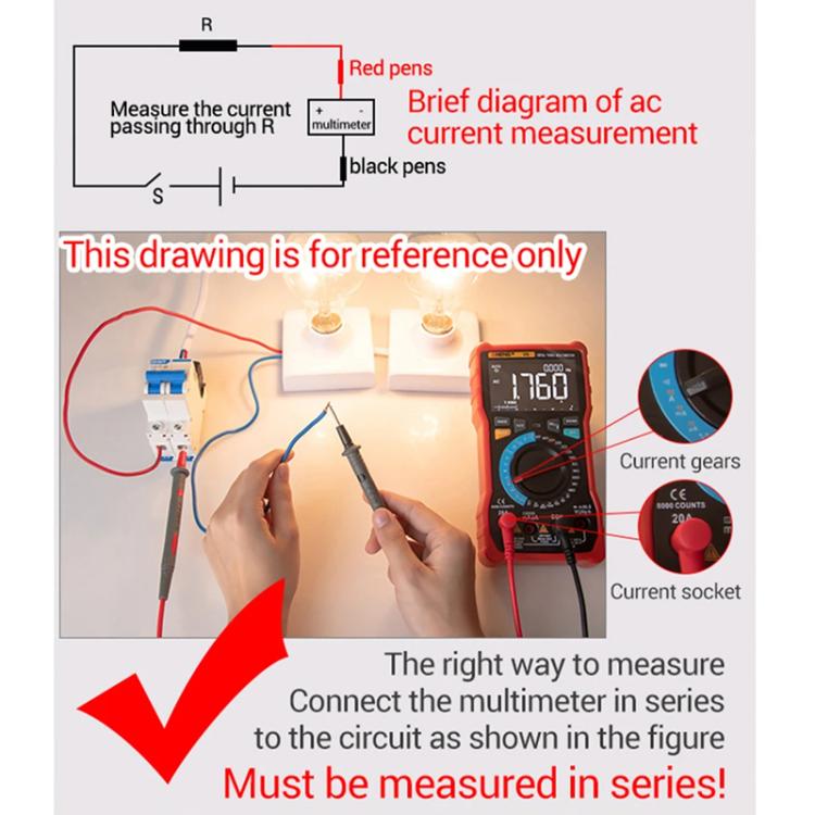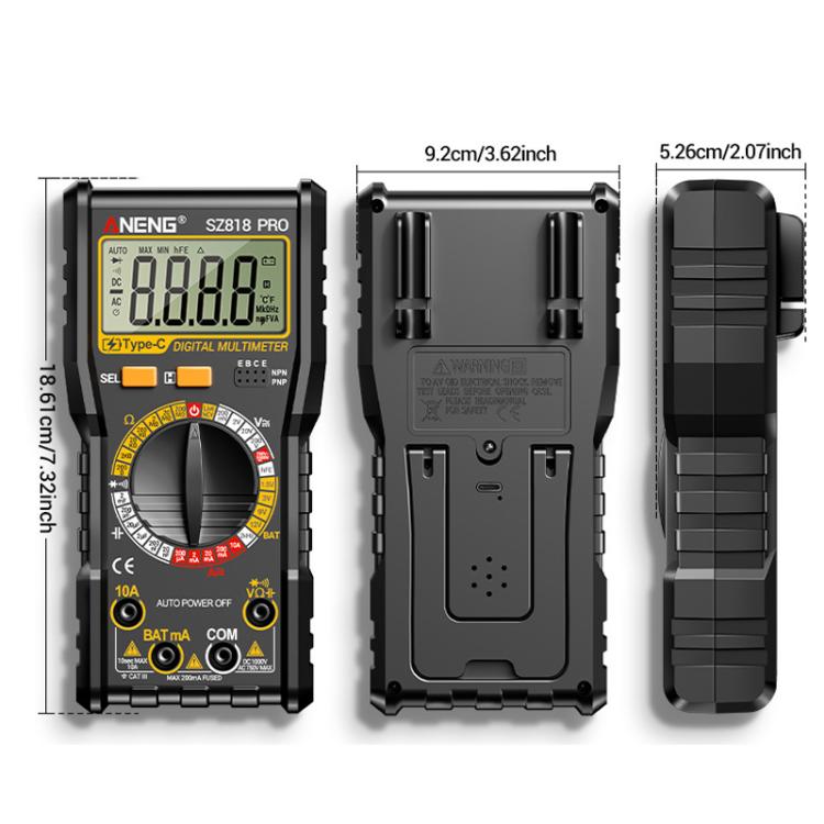 1. Main Functions: AC Voltage Measurement / DC Voltage Measurement / Diode Test / Continuity Buzzer / Capacitance Measurement / Resistance Measurement / Live/Neutral Wire Discrimination / AC Current Measurement / DC Current Measurement / NCV (Non-Contact Voltage) Detection / BAT Battery Test / hFE Transistor Test