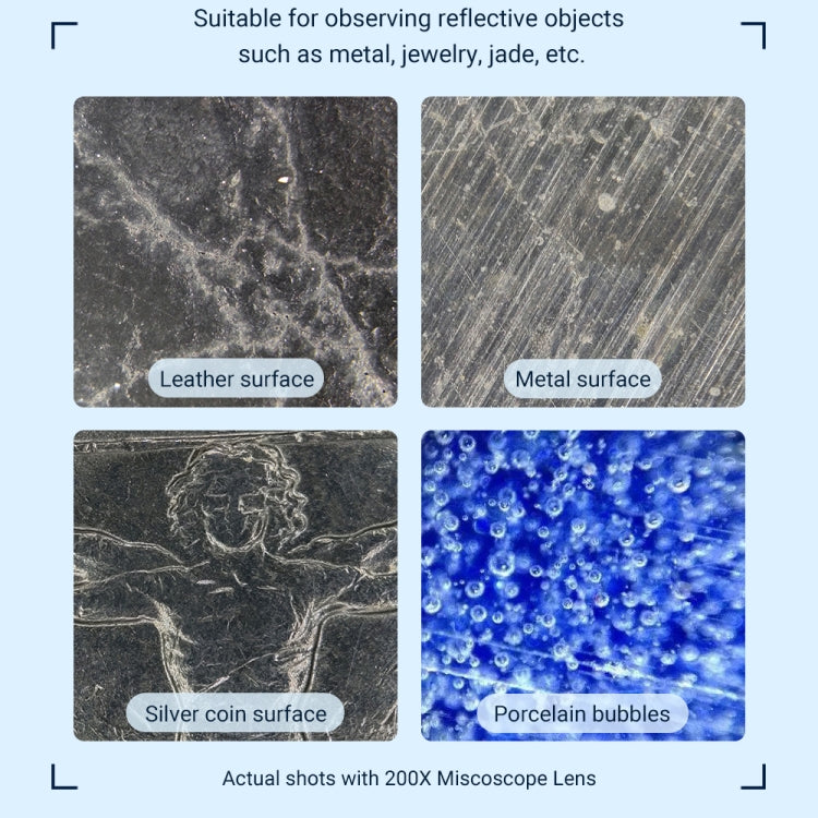8. Magnification: 200x (the ratio between the display size of the mobile phone and the actual size is about 13X)