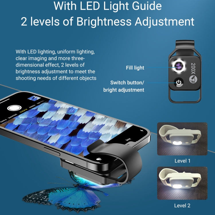 24. The microscope is used in a matching form with a clip, and the magnification is about 200x, which can fit most mobile phones on the market