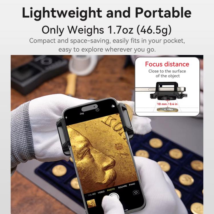 9. Slide structure design, so that the lens hole quickly aligned with the main lens of the phone, the operation of the silky smooth without lagging, to avoid multiple cumbersome focusing operations