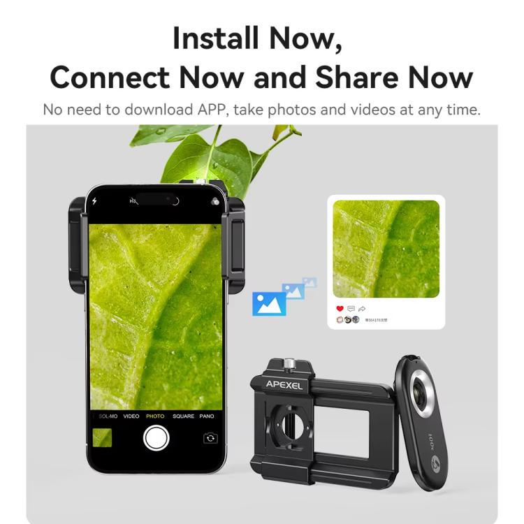 12. No need to download APP, lens installation is complete, open the cell phone photo function, you can observe and take pictures, while retaining and sharing