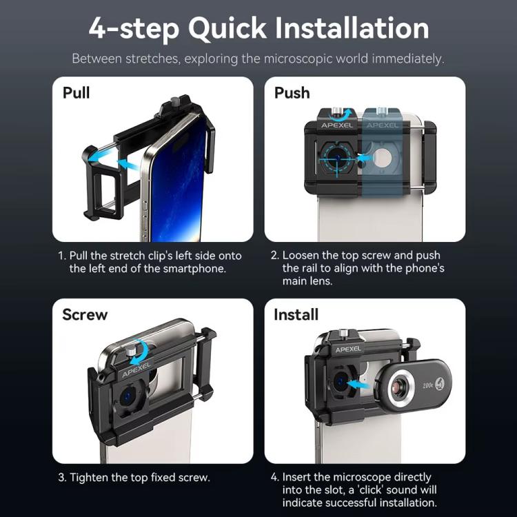 9. Slide structure design, so that the lens hole quickly aligned with the main lens of the phone, the operation of the silky smooth without lagging, to avoid multiple cumbersome focusing operations