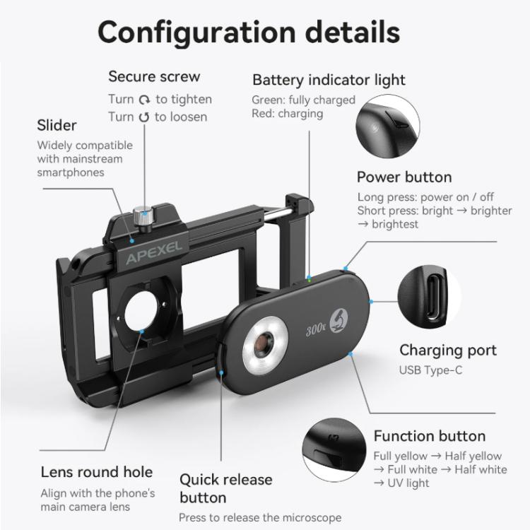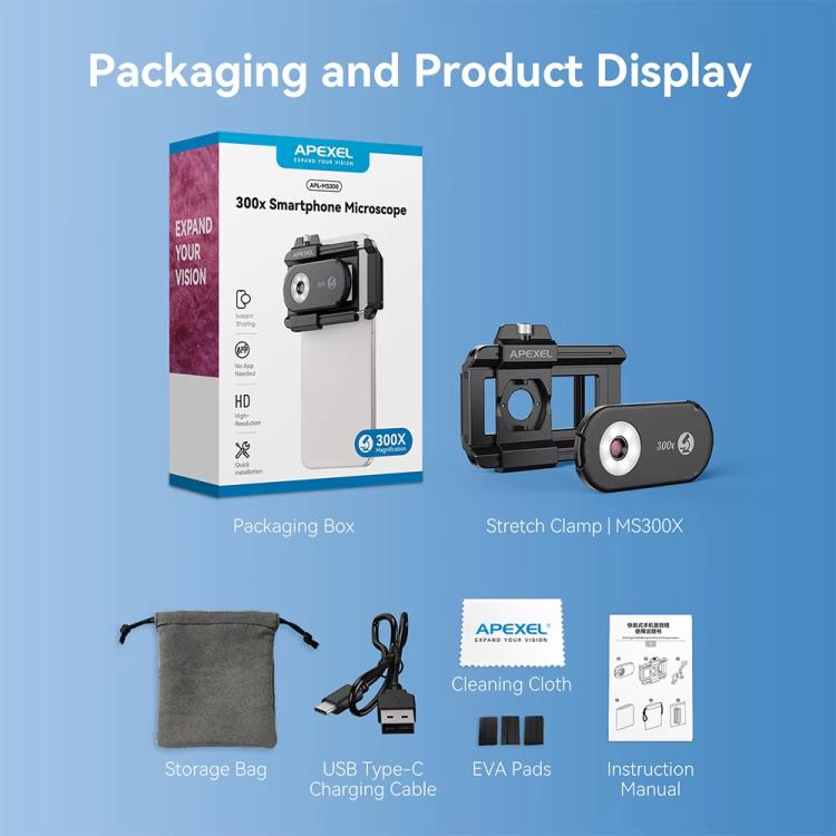 2. Featuring high definition, precise focusing, and accurate imaging, it meets users' demands for observing details of the microscopic world. Users can perform microscopic observations anytime, anywhere, and record/share them via their smartphone.
