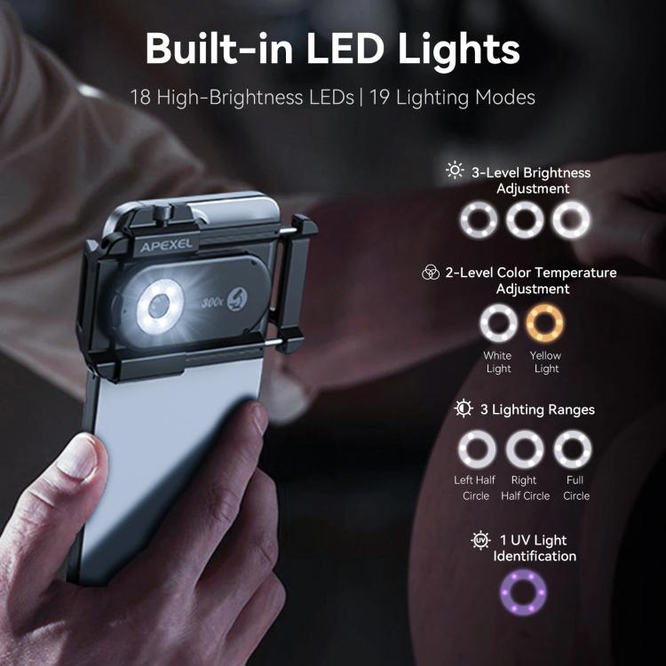 4. Multi-mode Fill Light: 18 high-brightness LEDs, 19 lighting modes.