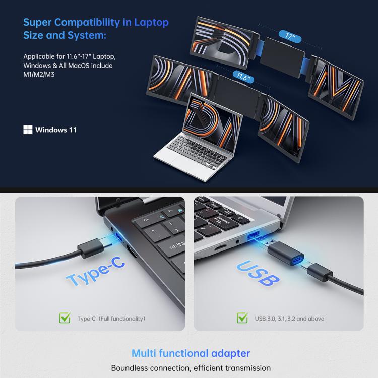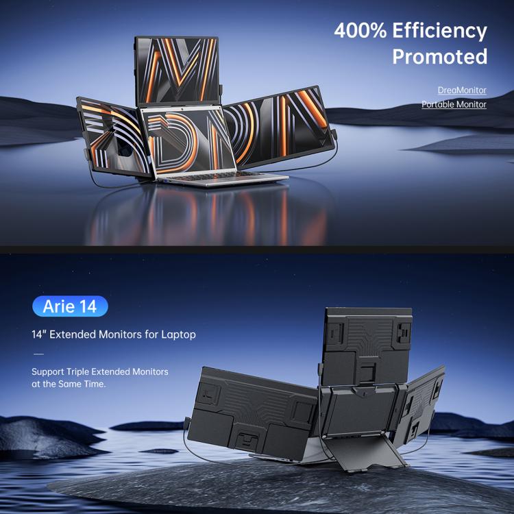 Arie 14 14 inch Expanded Display Triple Portable Monitor, Plug Type:US Plug(Black)