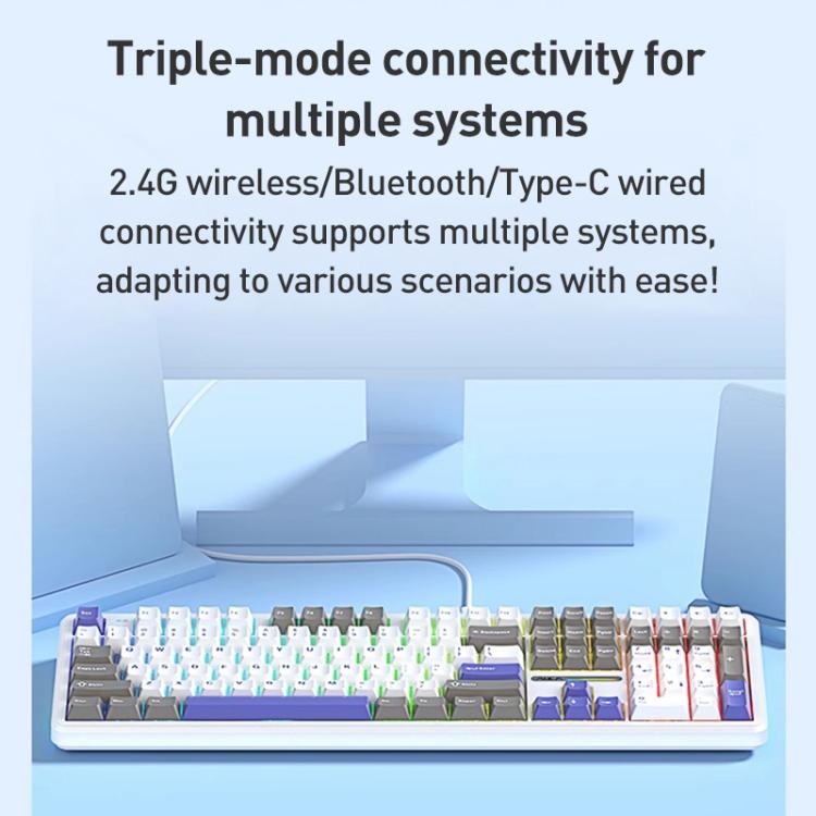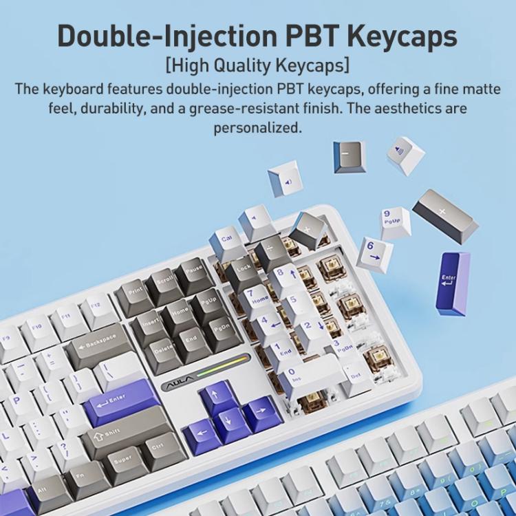 AULA F108 108 Keys Wired/2.4G/Bluetooth Three Model Customizable RGB Gaming Mechanical Keyboard(Gradient Gray Wind Spirit Axis)