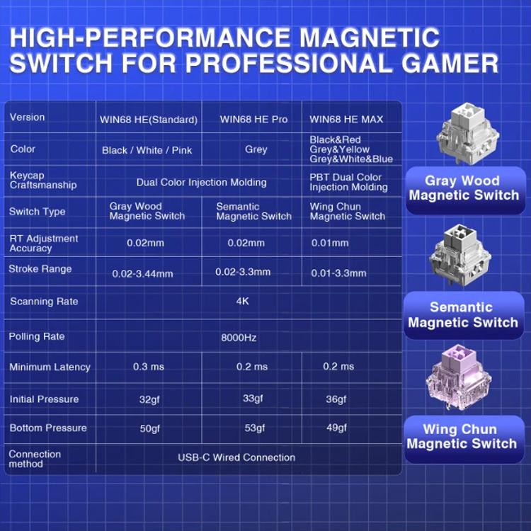 AULA WIN68HE Standard Version 68 Keys RGB Wired Keyboard(Black Contour Lines Grey Wood Magnetic Axis)