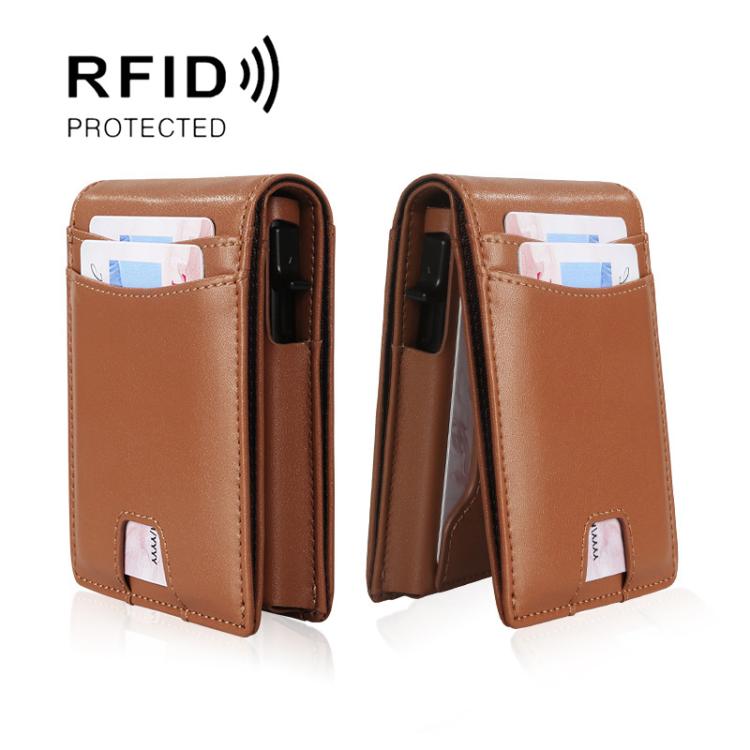 Auto Pop-Up Bifold Metal PU Card Holder RFID Blocking Wallet Slim Design For Credit Cards, ID(Apricot)