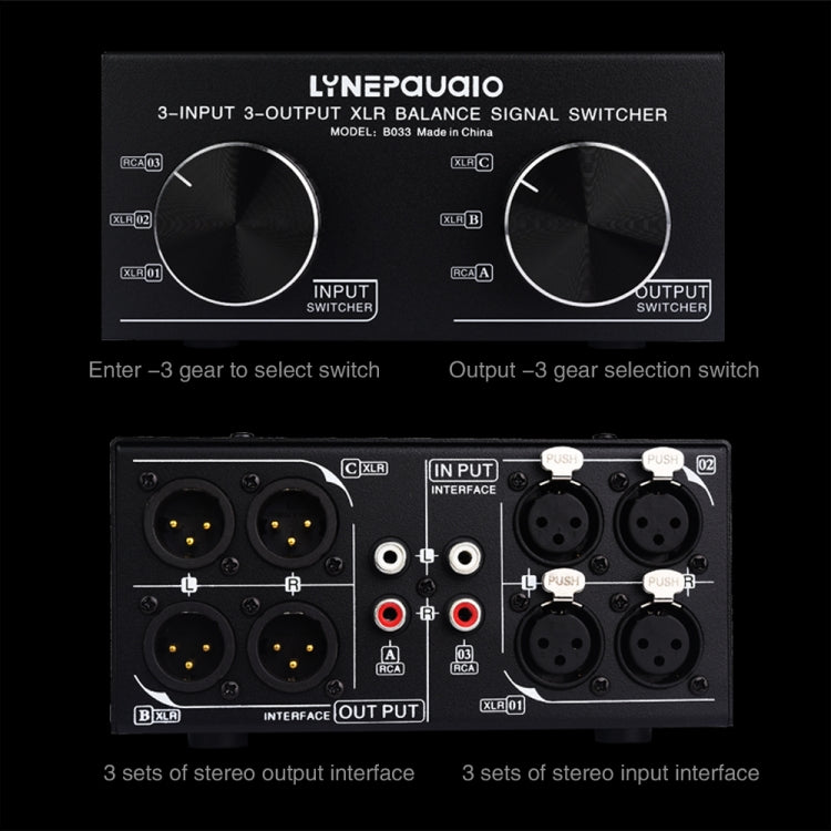 B033 3 Input To 3 Output Fully Balanced XLR Signal Passive Stereo Selector Switch Switcher