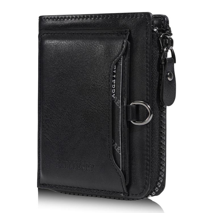 Baellerry D5124 Men Compact Wallet Vintage Waxed Leather Card Holder Multi-Card Compartment Zipper Coin Pocket(Black)
