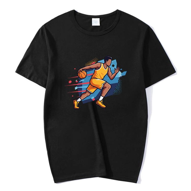 Basketball Player Printed Round Neck Modal Short Sleeve T-shirt Print On Your Demand, Size:XL(Black)