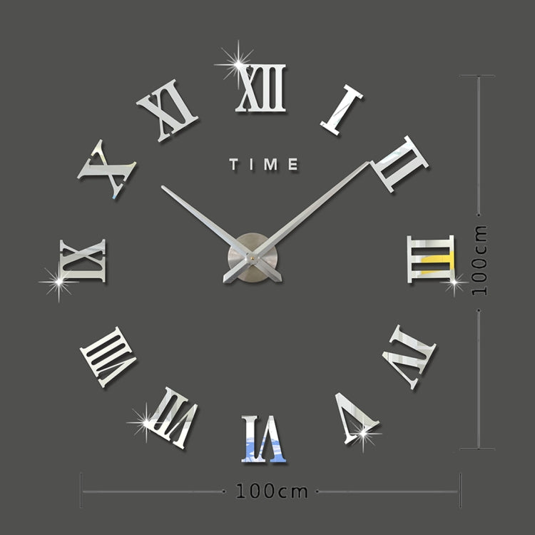 Bedroom Home Decoration Frameless Roman Numeral Large DIY Wall Sticker Mute Clock, Size: 100*100cm(Silver)
