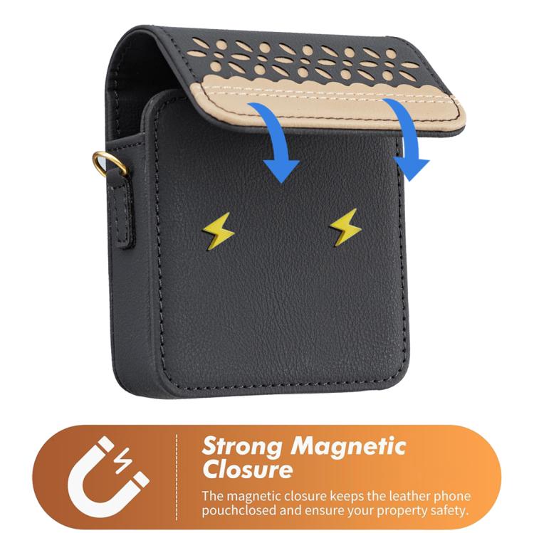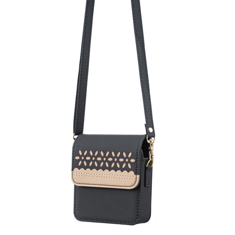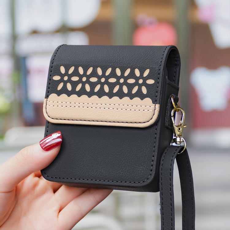 BFB13 BINFEN Color Flowers Crossbody Flip Phone Leather Bag(Black)