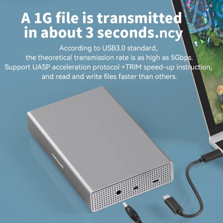 Blueendless U35K 3.5/2.5 inch Hard Drive Enclosure All-Metal USB 3.0 / Type-C High-Speed SATA Portable Hard Drive Enclosure EU Plug