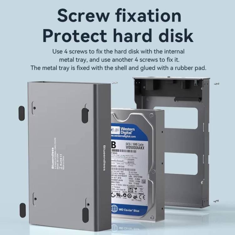 Blueendless U35K 3.5/2.5 inch Hard Drive Enclosure All-Metal USB 3.0 / Type-C High-Speed SATA Portable Hard Drive Enclosure US Plug