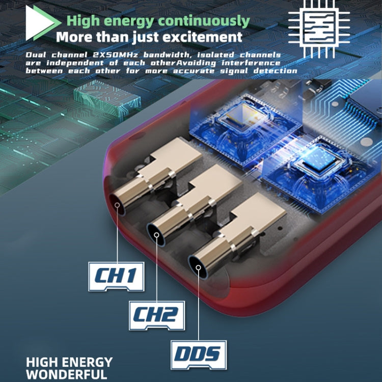 BSIDE O9 Digital Handheld Dual Channel 50MHz Oscilloscope Signal Source Multimeter, Spec: With Dual Oscilloscope Probe (Red)