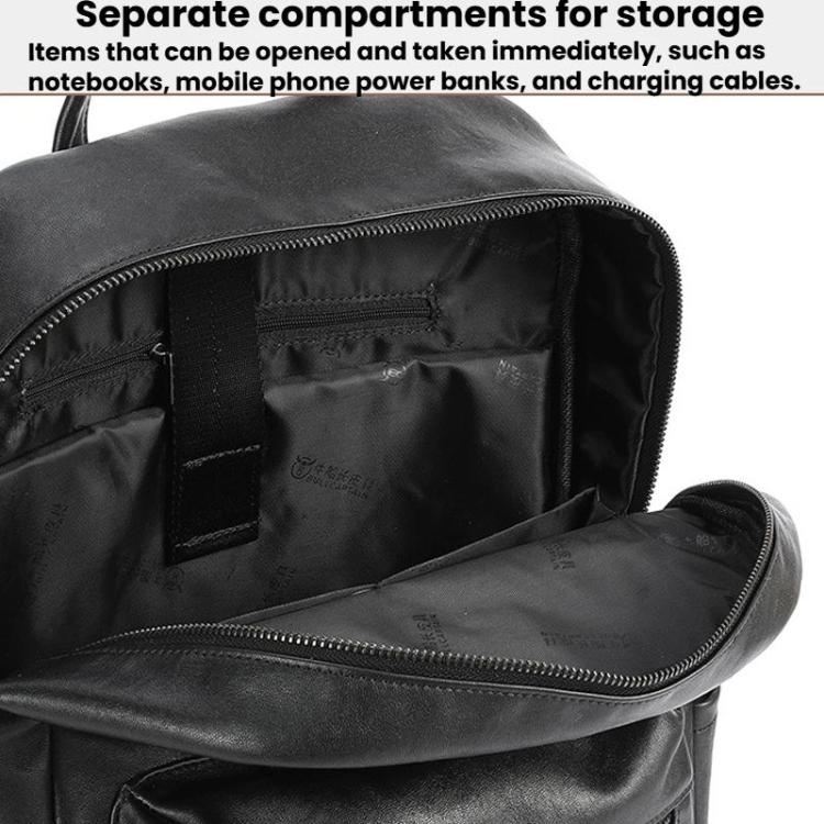 BULL CAPTAIN 606 Men Retro Leather Backpack Multi-Functional Laptop Bag(Black)
