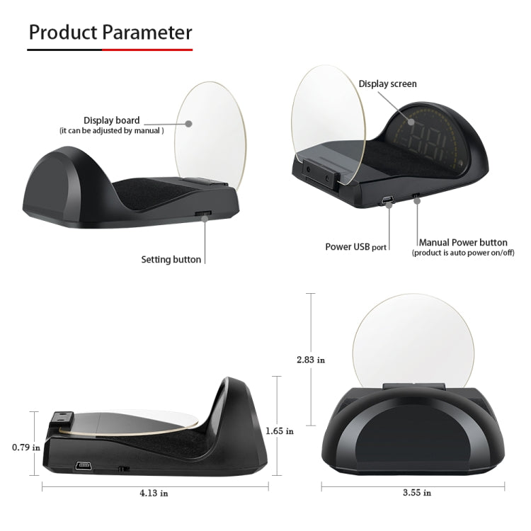 4. HUD short for Head Up Display. It displays driving datas on the front windshield such as speed, RPM, water temperature, voltage etc on the car front window glass; avoiding drivers unsafety because of watching the instrument while driving. Drivers can read the driving information instantly, and can always keep the best state on the way with HUD