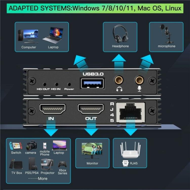 C9 USB 3.0 Gigabit Ethernet Loop Out Adapter 4K 60Hz HDMI Video Capture Card